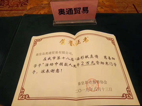 8月13日上午,2019年秦皇島市“福彩獻(xiàn)真情•慈善助學(xué)子”助學(xué)金發(fā)放儀式在秦皇島大酒店舉行。市委副書(shū)記丁偉、市人大常委會(huì)副主任曹玉寶、市政府副市長(zhǎng)廉茹艷、市政協(xié)副主席鄭泉出席儀式。今年是市民政局、市福彩中心、市慈善協(xié)會(huì)組織“福彩獻(xiàn)真情•慈善助學(xué)子”公益助學(xué)活動(dòng)的第18年,也是我公司參與資助活動(dòng)的第10年。在此活動(dòng)持續(xù)開(kāi)展的18年中,活動(dòng)累計(jì)投入4100多萬(wàn)元福彩公益金,資助了7300多名寒門(mén)學(xué)子圓夢(mèng)大學(xué),成為我市作為“全國(guó)文明城市”“中國(guó)最具愛(ài)心城市”的深度實(shí)踐,贏得社會(huì)各界的廣泛贊揚(yáng)。出席儀式的市領(lǐng)導(dǎo)和市民政局局長(zhǎng)趙懷木一起為受助學(xué)生代表發(fā)放了助學(xué)金,并為我公司及其它捐資助學(xué)的愛(ài)心企業(yè)頒發(fā)了榮譽(yù)證書(shū)。隨后,往屆受助學(xué)生代表向大家分享了自己在助學(xué)金的幫助下圓夢(mèng)成長(zhǎng)的故事,應(yīng)屆受助學(xué)生代表講述了自己坎坷的求學(xué)經(jīng)歷和得到資助后對(duì)未來(lái)美好生活的向往。希望他們一定要好好珍惜來(lái)之不易的求學(xué)機(jī)會(huì),心懷感恩,努力學(xué)習(xí),不懼困難,不負(fù)光陰,立志成為建設(shè)祖國(guó)和家鄉(xiāng)的棟梁之才。